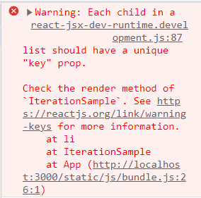 렌더링이 되지만 콘솔을 보면 "key' prop이 없다는 경고 메세지를 표기
