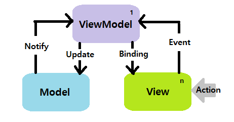 - View에 Action이 들어오면, Command 패턴으로 View Model에 Action을 전달