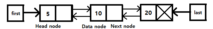 단순 연결리스트가 다음 노드로 갈수는 있지만 이전 노드로 갈 수 없는 점을 보완하여 양쪽 방향 모두의 노드를 연결한 리스트