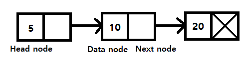 여러 개의 노드들이 순차적으로 연결된 형태를 갖으며 첫번재 노드를 head, 마지막 노드를 tail이라고 함