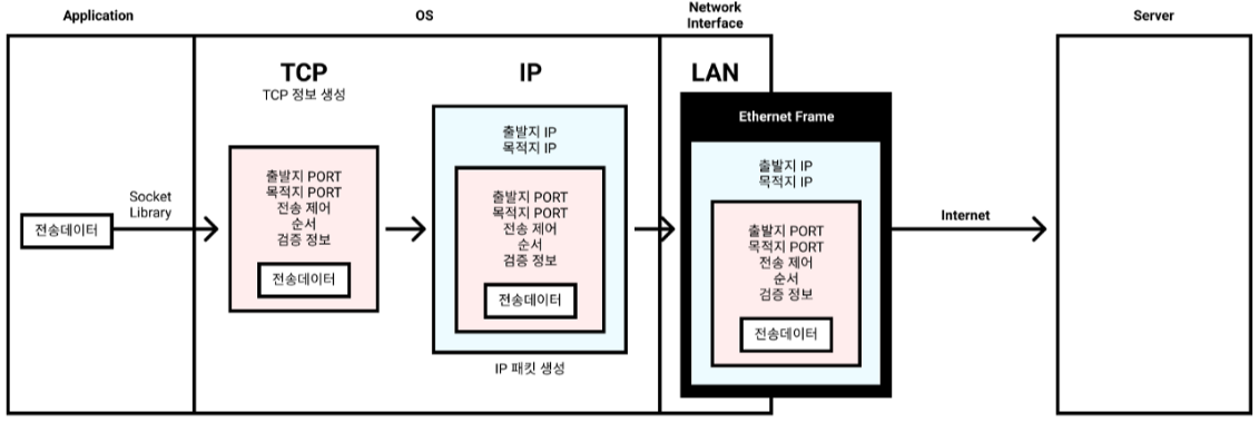 - 전송데이터를 TCP 포장