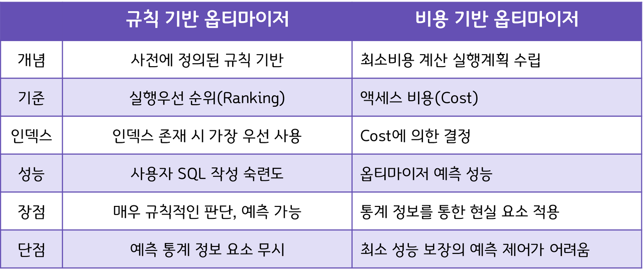 오라클8 이하의 버전에서 기본으로 설정된 옵티마이저