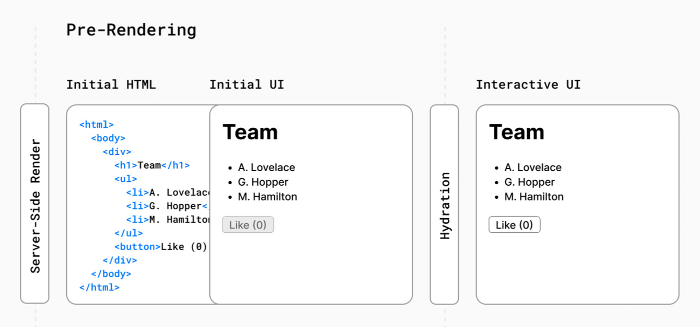 생성된 각 HTML은 해당 페이지에 필요한 최소한의 JS 코드와 연결되며, 브라우저가 페이지를 로드하면 JS 코드가 완전 인터렉티브하게 만들어지고 이 과정을 hydration이라고 부름