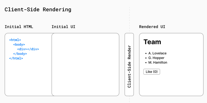 일반적인 React를 활용한 애플리케이션의 경우 body가 비어있는 html을 다운받고 CSR 방식으로 UI를 그림