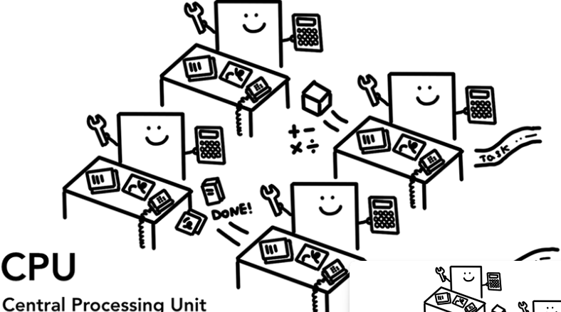 CPU 코어는 여러 종류의 작업을 하나씩 순서대로 처리할 수 있음
