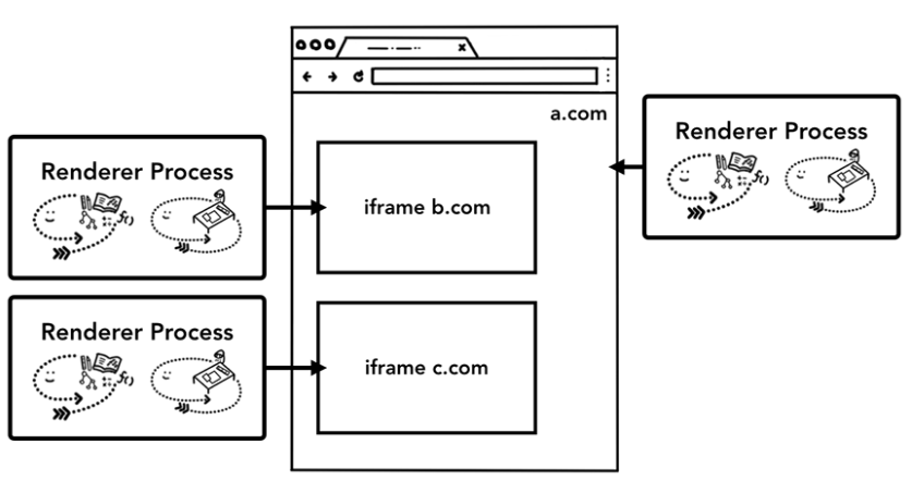 탭마다 렌더러 프로세스를 할당하는 모델에서는 iframe의 사이트가 같은 렌더러 프로세스에서 작동하기 때문에 서로 다른 사이트 간에 메모리가 공유될 수 있다는 문제가 생김