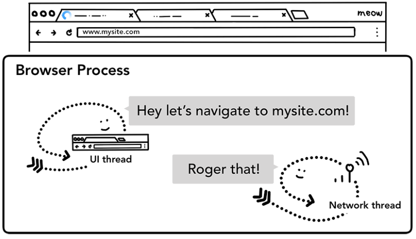 저번에 이어 웹 사이트를 표시하기 위해 각 프로세스와 스레드가 어떻게 통신하는지 좀 더 깊게 알아보고 있음