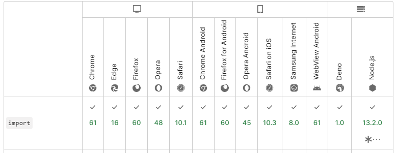 기존에는 위와 같은 라이브러리에 의존해야 했던 모듈 기능을 ECMAScript 6부터 네이티브 자바스크립트에서도 지원하기 시작했으며 여러 브라우저에서도 모듈 로딩을 최적화할 수 있도록 모듈 기능을 지원하고 있음