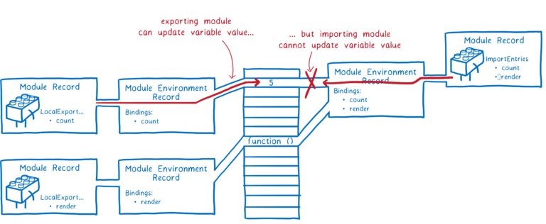생성된 모듈 환경 레코드는 각 export와 연관되어 있는 메모리 공간을 추적하는데